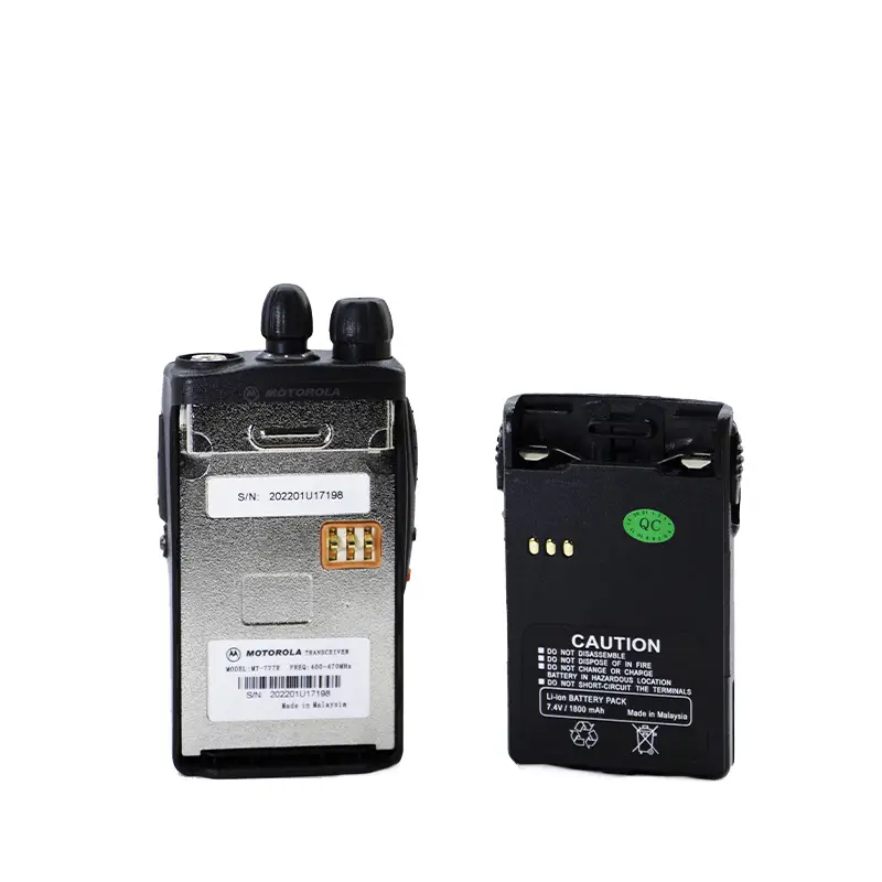 بیسیم موتورولا مدل MT-777 یک بیسیم کاملا حرفه ای که می توان از آن در کمپینگ ها و کوهنوردی استفاده نمود. این دستگاه بردی حدود 2 تا 3 کیلومتر در فضای داخل شهری و بردی 4 تا 6 کیلومتر در فضای باز دارد. این بیسیم موتورولا بسیار خوش دست و کوچک است که به راحتی می توان درهر مکان از آن استفاده نمود و آن را حمل کرد.